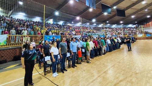 O ginásio Belin Carolo, em Campo Mourão, rerebeu grande público nesta sexta-feira à noite, na cerimônia de abertura da fase final do Paraná Bom de Bola. Entre os políticos presentes, o prefeito Tauillo Tezelli, o secretário de Estado Márcio Nunes (Turismo), o deputado Douglas Fabrício e o ex-prefeito Nelson Tureck. A abertura foi encerrada com show com a dupla Marcos & Belutti.