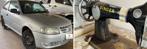 Entre os equipamentos, há roçadeiras, cadeiras odontológicas e até 32 máquinas de costura Singer.