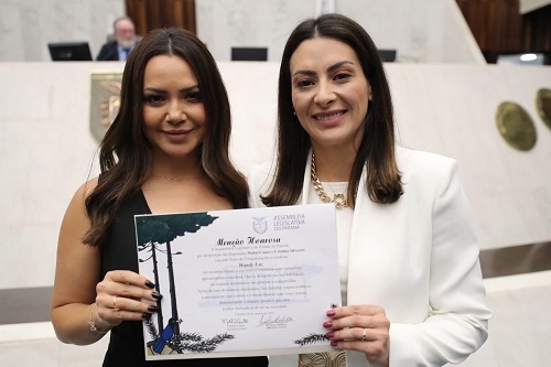 A Assembleia Legislativa do Paraná entregou nesta quarta-feira menção honrosa para a jornalista, apresentadora e escritora Wandy Luz. A entrega foi feita pela deputada Mabel Canto. Detalhe: Wandy, que atualmente mora em Londres, é natural de Moreira Sales. Já Mabel é filha do ex-prefeito de Ponta Grossa, Jocelito Canto, e morou quando criança em Ubiratã, onde o pai era radialista.