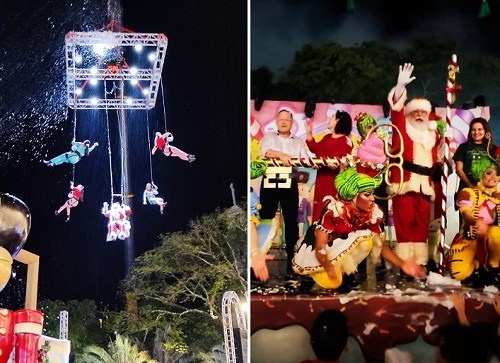 Araruna – O Papai Noel chegou de balão, nesta sexta-feira, na praça central. Foi o 6ª Natal Luz, que incluiu apresentações artísticas e um culto ecumênico. “Foi um evento pensado na família ararunense”, frisou o prefeito Leandro de Oliveira.
