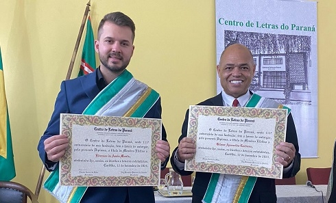 O Centro de Letras do Paraná fez sessão solene nesta terça-feira, em Curitiba, para comemorar seus 111 anos de fundação. A programação incluiu a posse de novos membros. Um deles é o padre Ederson de Assis, de Peabiru. Já o ex-prefeito de Farol, Gilmar Cardoso, foi reempossado. Explica-se: ele era desde 1990 membro-correspondente (para quem é de fora da capital) e a partir de agora passa a ser membro-efetivo. A ex-prefeita de Farol, Dina Cardoso, prestigiou o evento.