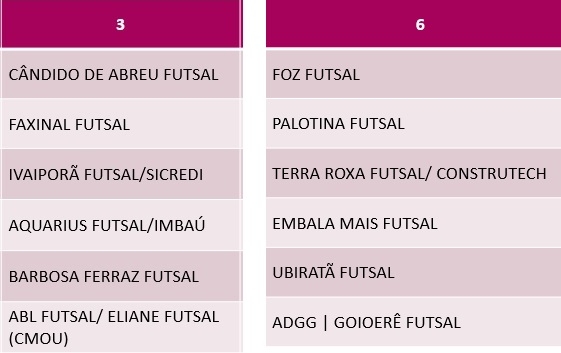 Anote aí – ABL/Eliane (Campo Mourão) e Barbosa Ferraz no grupo 3, e Goioerê e Ubiratã no grupo 6.