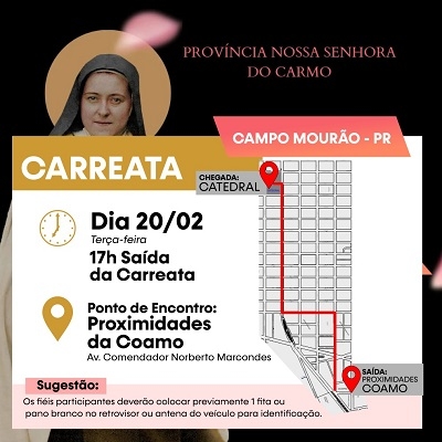 A chegada a Campo Mourão será marcada por uma carreata nesta terça (17h), das proximidades da Coamo até a Catedral.