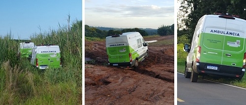 São três ambulâncias Ford Transit e uma MB Sprinter