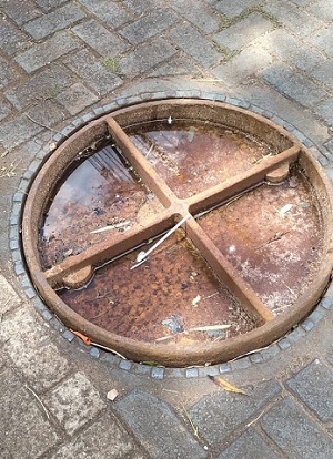 Sabe-se lá como a tampa virou de cabeça para baixo e passou a acumular água, para alegria do mosquito da dengue. Fica na av. Irmãos Pereira com Harrison José Borges.