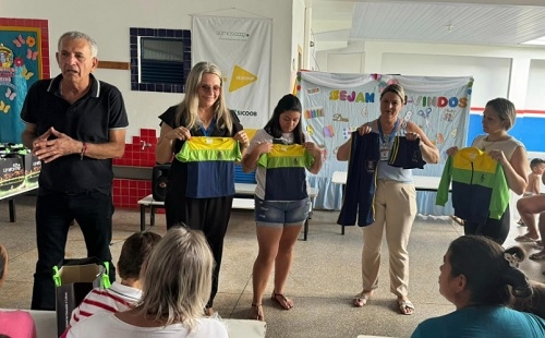 Campina da Lagoa – Os alunos da rede municipal estão recebendo kit de uniforme – duas camisetas, dois shorts, uma calça e uma jaqueta. O investimento é de cerca de R$ 500 mil. O prefeito Milton Luiz Alves vem participando das entregas dos kits.