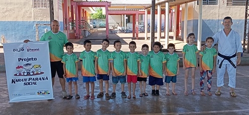 Alunos do projeto Karatê Paraná Social receberam nesta sexta camisetas para atividades. As aulas de karatê são realizadas na escola municipal Paulo VI, para 50 alunos. Os recursos são da Lei Federal de incentivo ao esporte, do Ministério do Esporte, com recursos de Imposto de Renda do Paraná Supermercados.