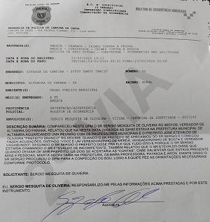 Os dois se ‘estranharam’ na sexta-feira e o vereador chegou a registrar BO na delegacia de Campina da Lagoa.
