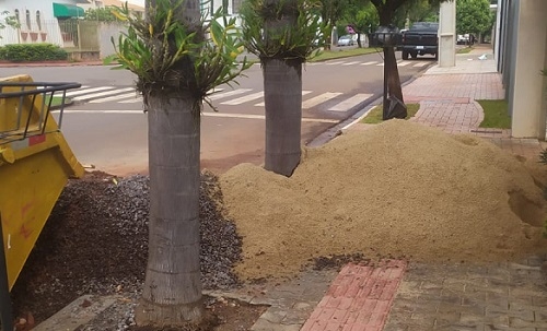 Na av. Comendador Norberto Marcondes, materiais de construção ocupam toda a calçada.