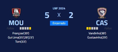 Desta vez foi por 5 a 2, pela Liga Nacional de Futsal.