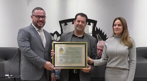 A Câmara de Campo Mourão segue com a maratona de entrega de homenagens. Nesta quarta-feira à noite a sessão solene foi para a entrega da Comenda 10 de Outubro para a Pedreira Itaipu. A comenda foi entregue pelo vereador autor, Marcio Berbet, e pela vice-prefeita Fátima Nunes a um dos sócios da empresa, Marcelo Vendramin Marques. Sete vereadores marcaram presença à sessão.