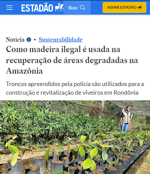 “Como madeira ilegal é usada na recuperação de áreas degradadas na Amazônia”. Essa é o título de reportagem publicada nesta sexta-feira pelo jornal O Estado de S. Paulo. O texto é sobre o projeto Colhendo Sementes, Construindo Viveiros, criado na comarca de JI-Paraná/RO pelo juiz Maximiliano Deitos. Ele é de Campo Mourão. A proposta transforma a madeira ilegal, que é apreendida, em viveiros de mudas. E essas mudas são usadas na recuperação de áreas degradadas.