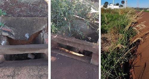 Caminhando pelas ruas do Residencial Parque do Lago, somente na parte alta, encontrei 10 bueiros com tampas quebradas. Tem lugar que o mato já invadiu a rua. Será que irão trocar?