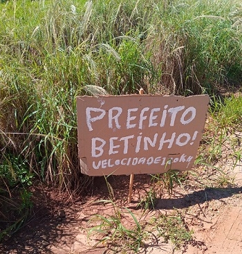 Alguém explica esse cartaz colocado na entrada do distrito de Jaracatiá, em Goioerê?