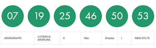 Uma aposta feita no Rio de Janeiro foi a única que acertou as seis dezenas da Mega Sena sorteadas neste sábado. Levou um prêmio acumulado de R$ 102 milhões. Na região de Campo Mourão teve apostador que passou perto. Das 145 apostas que fizeram a quina, uma dela foi realizada na Lotérica Araruna, em Araruna, e levou R$ 40,5 mil.