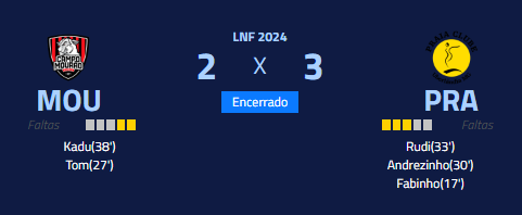 Próximo jogo pela LNF dia 30, em Joinville/SC.