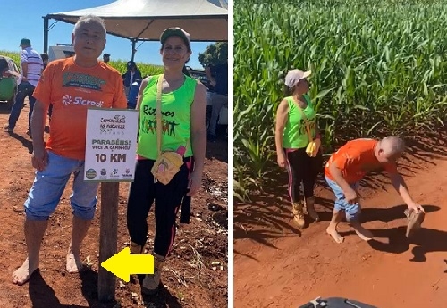 Mais de 300 pessoas participaram neste domingo da 1ª Caminhada Internacional na Natureza de Quarto Centenário. O prefeito Akio Abe foi um deles. Detalhe: encerrou o percurso de 11,7 km descalço. Tem até um vídeo que mostra o momento em que o prefeito tira o calçado, que vai para a camionete de apoio. Tá pensando o quê?!...