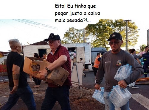 O clic é de Mamborê, onde também aconteceu campanha de arrecadação de mantimentos para ajudar as vítimas da enchente no Rio Grande do Sul. Na hora de carregar o caminhão, até o prefeito Ricardo Radomski deu uma mãozinha...