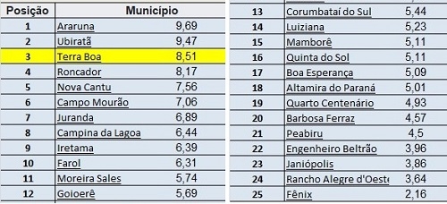 Lembra da avaliação da atuação governamental disponibilizada pelo portal do Tribunal de Contas do Estado? Boca Santa mostrou o desempenho regional em saúde, educação e transparência. Agora está aí o resultado em assistência social. Destaque para Araruna (9,69), Ubiratã (9,47) e Terra Boa (8,51). Campo Mourão ficou na sétima posição, com 7,06.