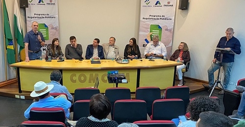 Comcam, Cohapar e Casa Civil apresentaram nesta quarta-feira, em Campo Mourão, o programa ‘Escritura na Mão’. Dez prefeitos participaram. O objetivo é a regularização fundiária nas cidades. “Através da Cohapar e desse trabalho fantástico vamos conseguir levar a titularidade das moradias para várias famílias”, frisou o presidente da Comcam, Edemilson Moura (Terra Boa).