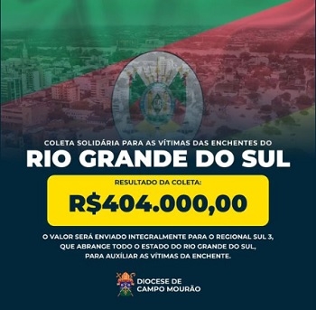Campanha feita pela diocese de Campo Mourão arrecadou R$ 404 mil para o Rio Grande do Sul.