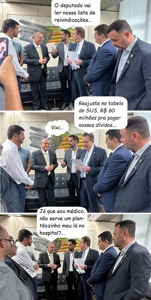 Os cliques são desta quarta-feira, em Brasília, quando o vice-presidente da República, Geraldo Alckmin, recebeu uma comitiva da região de Campo Mourão. Estavam lá o interventor da Santa Casa, Sérgio Henrique dos Santos, e os prefeitos Rafael Bolacha (Moreira Sales), Edenilson Miliossi (Barbosa Ferraz), Leandro de Oliveira (Araruna) e Junior Garbim (Engenheiro Beltrão). O deputado federal Luciano Ducci, acompanhou o encontro.