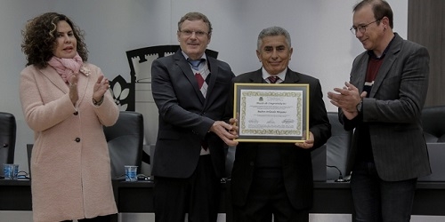 Teve sessão solene nesta terça-feira à noite na Câmara de Campo Mourão. Foi para entrega de moção ao coordenador da Rota da Fé e articulador do Caminho Iniciático de Santiago de Compostela, Ruben Moyano. A entrega foi feita pelo vereador autor, Escrivão Parma, e pelo diretor da Secretaria de Inovação, Rosinaldo Cardoso, que representou o prefeito Tauillo Tezelli. Quatro vereadores participaram da sessão.
