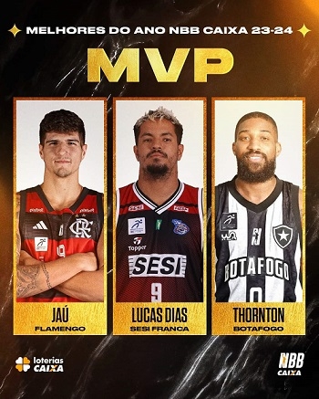 A Liga Nacional de Basquete divulgou a lista dos três melhores jogadores do NBB 2023/24. Tem um representante do Flamengo e outro do Franca, os dois finalistas da competição. E tem um do Botafogo, que caiu nas oitavas. E o que é que a gente tem a ver com isso? Tem que o botafoguense Isaac Thornton já disputou o NBB por Campo Mourão. Com o Botafogo fora, ele está disputando a liga da Venezuela.