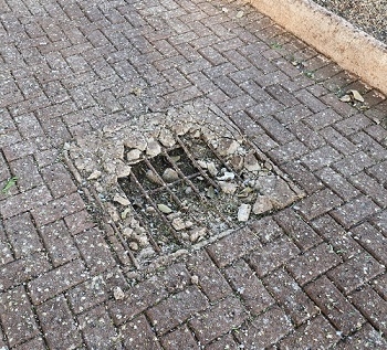 Tampa quebrada na praça Getúlio Vargas, perto do ponto de táxi.