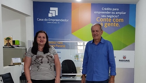 A ex-prefeita de Farol Angela Kraus esteve esta semana na Acicam. Ela é assessora regional da Secretaria de Estado da Indústria, Comércio e Serviços e foi falar dos programas que a pasta oferece para os empresários. O presidente e a vice-presidente da Associação Comercial de Campo Mourão, Francisco Viudes e Fabíola Casoto, participaram da reunião, além de outros diretores da entidade.