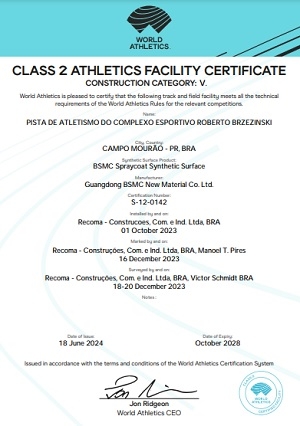 Saiu a homologação da pista de atletismo do estádio Roberto Brzezinski, em Campo Mourão.