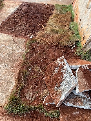 Rua Pedro Introvini, no jardim Santa Cruz. Sanepar arrebentou a calçada em busca de vazamento e olha a situação que deixou. Há uma semana, calçada quebrada, grama com terra e cadê a empresa para arrumar a calçada dos moradores?