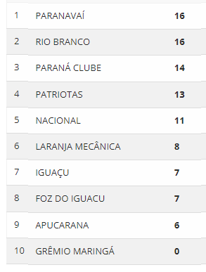 O Capivarão foi a 11 pontos e ficou a apenas dois pontinhos do quarto colocado, o Patriotas (13).
