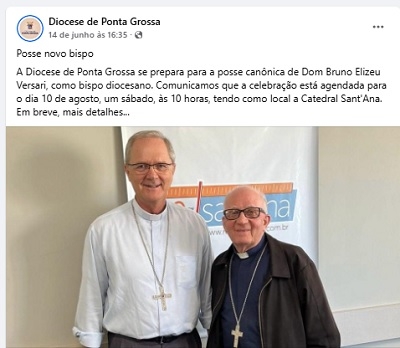 É o que diz postagem em redes sociais feita pela diocese ponta-grossense.