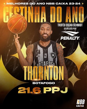 Aconteceu nesta terça-feira, em São Paulo, a entrega dos prêmios aos destaques da temporada do NBB. O norte-americano Isaac Thornton faturou três prêmios – Cestinha do Ano (média de 21,6 pontos por jogo, o que lhe rendeu o Troféu Oscar Schmidt), Estrangeiro do Ano e Ala do Ano. Ele jogou a temporada pelo Botafogo/RJ, mas estreou no NBB como atleta de Campo Mourão na temporada 2016/17.