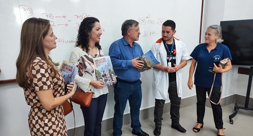 Lembra do gibi com a história de Campo Mourão lançado pela Secretaria Municipal de Educação? Começou a ser distribuído nesta sexta-feira também para alunos do 3º ano de escolas particulares. No primeiro dia quatro foram atendidas. Até o prefeito Tauillo Tezelli e a vice, Fátima Nunes, acompanharam algumas entregas.
