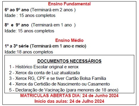 É preciso ter 15 anos para o fundamental e 18 para o médio.