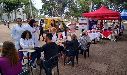 Alunos de seis cursos da Faculdade Unicampo prestaram atendimentos e orientações na praça São José, no centro de Campo Mourão. A ação envolveu os cursos de Enfermagem, Psicologia, Fisioterapia, Estética e Cosmética, Direito e Gestão de Recursos Humanos.