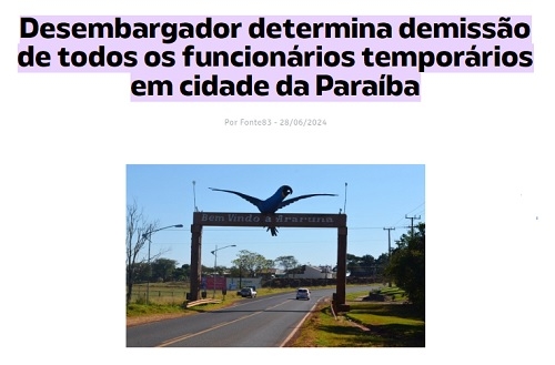 O print é do site Fonte 83, da Paraíba. A manchete está correta, afinal, sim, existe uma cidade chamada Araruna naquele estado. Só que a foto que ilustra o texto é de outra Araruna, a do Paraná. A arara sobre o portal na entrada da cidade não deixa dúvidas. Assim, o prefeito da Araruna paranaense, Leandro de Oliveira, pode ficar tranquilo, afinal, o problema é do colega paraibano...