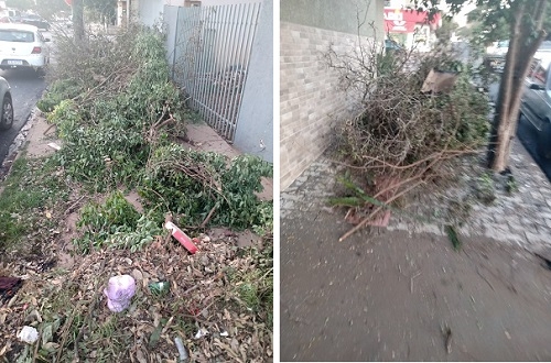 Galhos de árvores são ‘esquecidos’ sobre a calçada em dois pontos da rua Rocha Pombo.