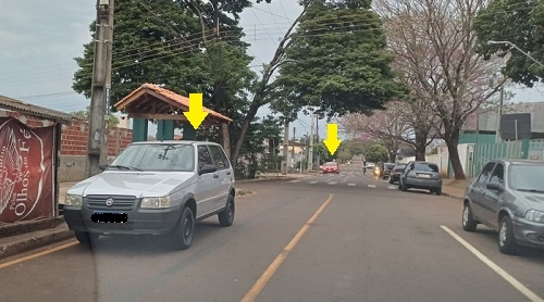 Carros estacionados junto à faixa amarela (onde não pode), no jardim Cidade Nova.