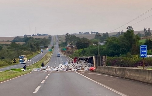 Mais uma carreta tombada na saída para Maringá. No mesmo lugar de sempre...