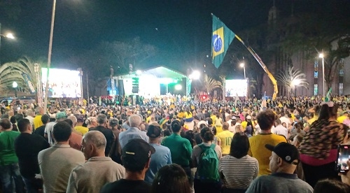 O ex-presidente Jair Bolsonaro participou de comício nesta quinta-feira à noite no centro de Campo Mourão.