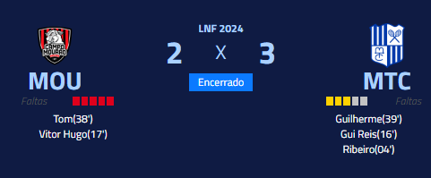 Campo Mourão perdeu para o Minas por 3 a 2, neste domingo, pela Liga Nacional de Futsal.