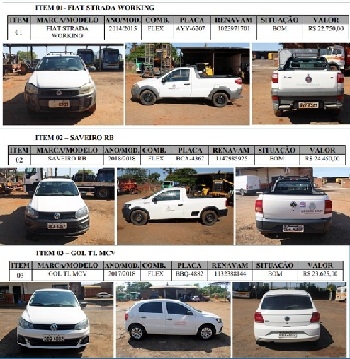Vão a remate dois carros, duas camionetes, uma ambulância, uma Kombi, três vans, um micro-ônibus, quatro tratores e uma motoniveladora.