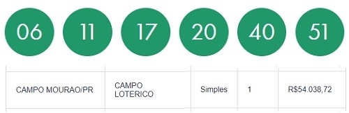 Ninguém acertou as seis dezenas da Mega Sena sorteadas nesta quarta-feira. Assim, o prêmio que já estava acumulado em R$ 35 milhões deve chegar a R$ 42 milhões no próximo sorteio, sábado. A quina teve 71 apostas ganhadoras, sendo nove do Paraná e uma delas feita na lotérica Campo Lotérico, em Campo Mourão. Prêmio para a quina? R$ 54 mil.