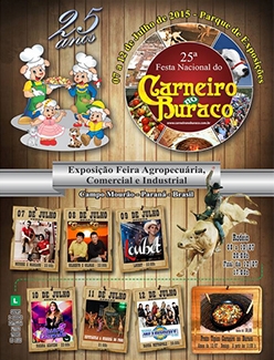 ...para o prato típico de Campo Mourão ser servido na 25ª Festa Nacional do Carneiro no Buraco. O cartaz acima é da 13ª edição do evento, realizada de 10 a 13 de julho de 2003. Além do carneiro, o cartaz destacava que haveria acrobacias aéreas e show com o cantor Daniel. Esse show, aliás, teve pouco público (era pago) e deixou prejuízos para a prefeitura.