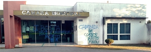 A polícia já prendeu um homem suspeito pelo fogo no carro e pelo pichação da Câmara.