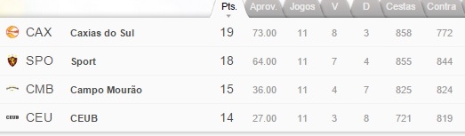 Campo Mourão terminou a primeira fase da Liga Ouro de Basquete com vitória sobre Caxias/RS.