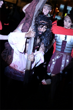Um bom público, como sempre, compareceu à praça São José, nesta sexta-feira, para ver o Auto da Paixão de Cristo. E mais uma vez o pessoal da Fundacam se superou, emocionando o público. Foi a 14.a vez que o espetáculo foi encenado em Campo Mourão e pela quarta vez a direção foi de Vanuza Eloísa. Mais de 100 pessoas, entre atores, figurantes, músicos, dançarinos, artistas, técnicos, atiradores do Tiro de Guerra, alunos da Apae e voluntários fizeram parte do evento.